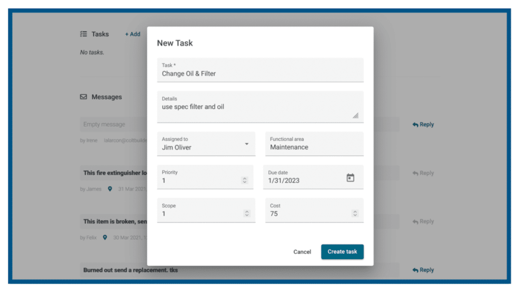 To help with scheduling equipment inspections, consider using GoCodes Asset Tracking’ task feature.