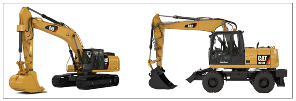 Here’s an example of an excavator on tracks and another one on wheels: