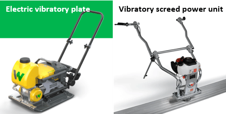 And the last on this list of concrete vibrator types are surface vibrators (plate or screed) that are applied to the surface of poured concrete.