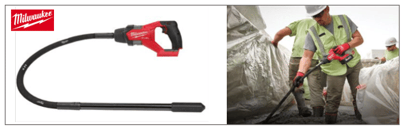 Let’s start with the most common type, immersion vibrators, also known as internal, poker, or needle vibrators, like this one made by Milwaukee: