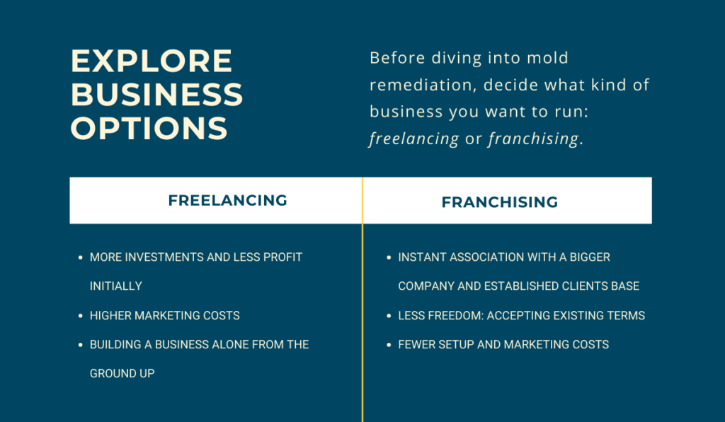 Before diving into mold remediation, you need to understand what kind of business you want to run—freelancing or franchising.
