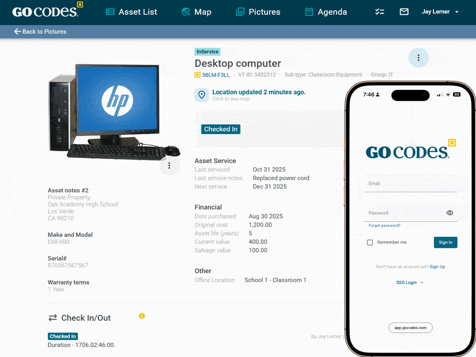 Second, our software has been designed to be truly straightforward and easy to use. Central to that ease of use, is our web software that works beautifully on your smartphone & tablet and features instant barcode scanning. With GoCodes Asset Tracking there’s no mobile apps to install or additional software to learn. Employees simply have to familiarize themselves with a single software to accomplish everything in GoCodes Asset Tracking!