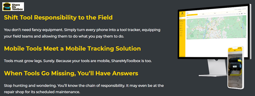 ShareMyToolbox is a tool management software with an interface optimized for mobile device use that allows workers to easily track, find, and share tools.