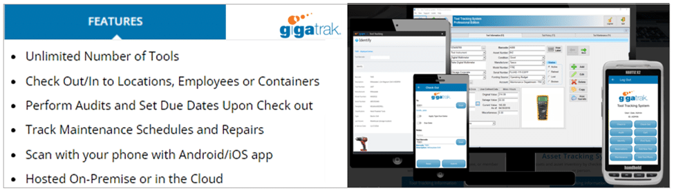 In other words, GigaTrak allows you to combine devices like smartphones and tablets and selected handheld barcode scanners, all depending on your company’s tool management needs.