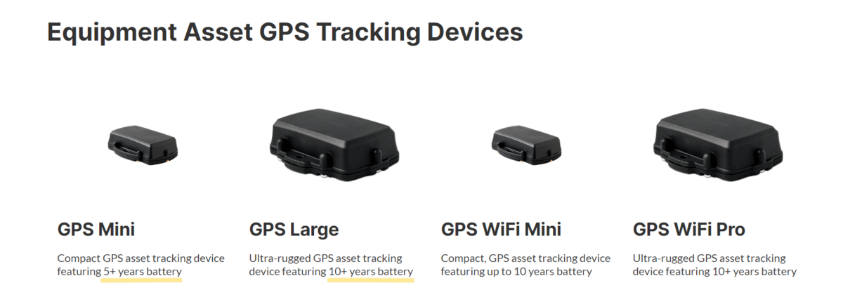 Their selection of asset trackers goes from Bluetooth to sensor monitoring and includes both battery-powered and wired trackers.