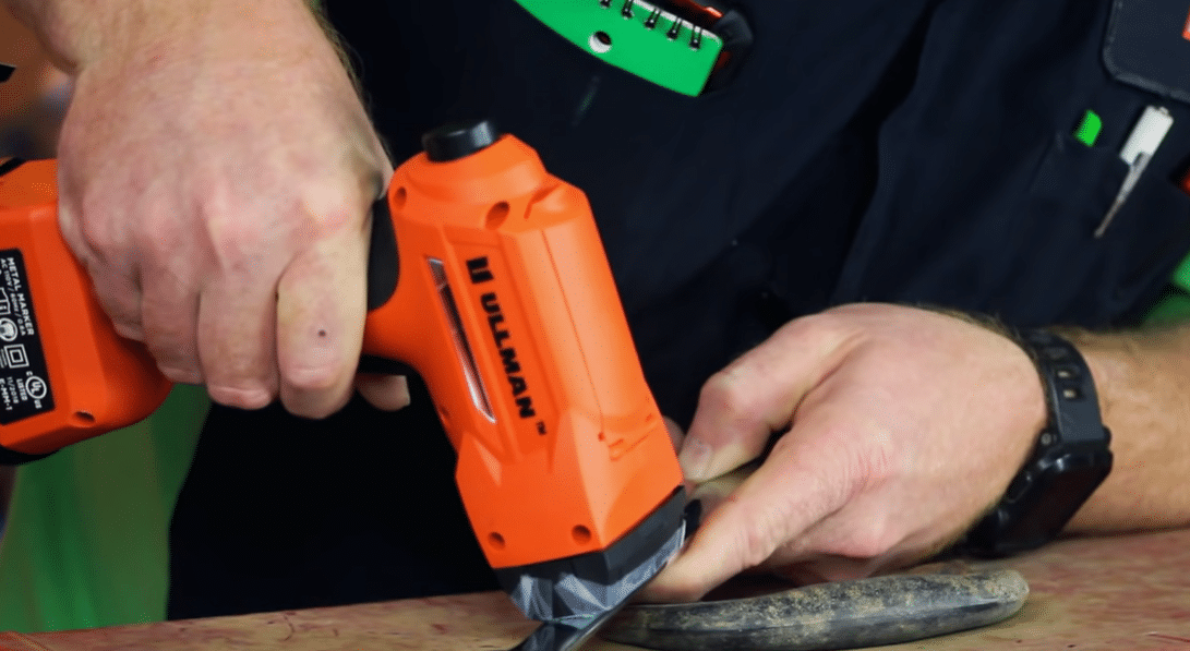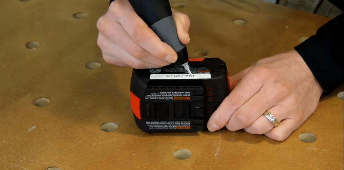 Hold the trigger for five seconds, and you end up with a clean and legible etched marking on your tools.