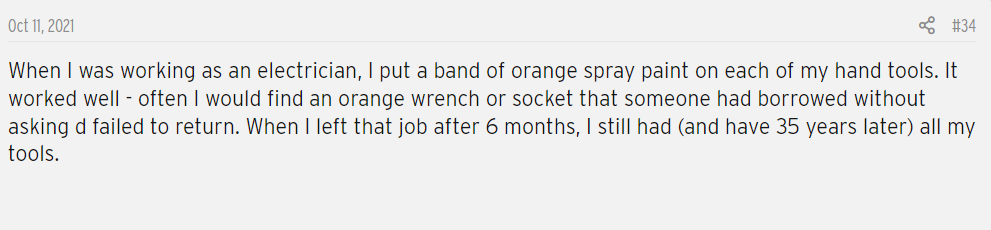 He used a can of orange spray paint and could quickly recover any borrowed tools because they were distinctly marked as his.