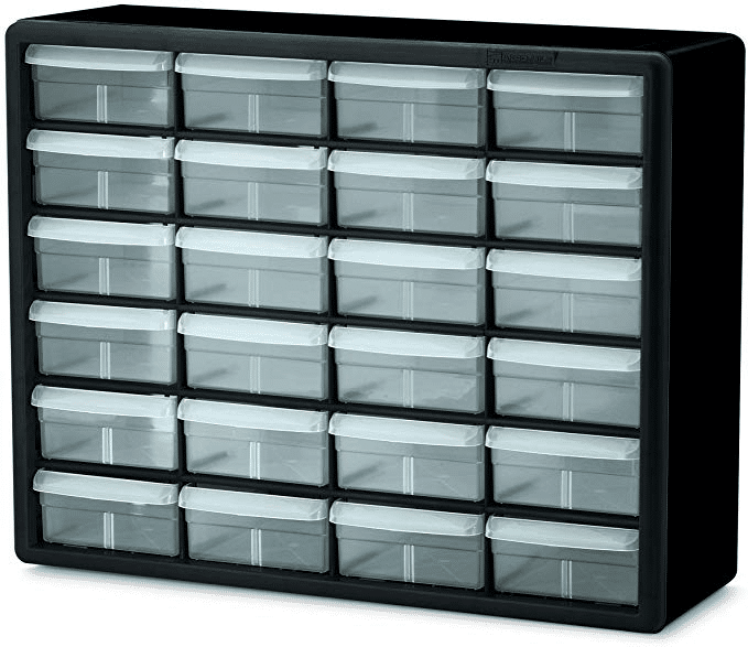 These clear containers make it easy to see what’s stored in them, but you can also place labels on them to find what you need faster. In most situations, having a well-organized space means keeping the smallest items neatly stored and off of your workstation.