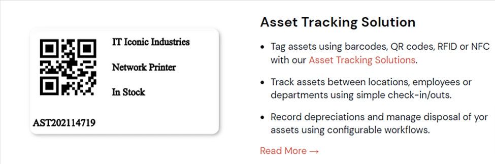 Other notable features of Asset Infinity include end-to-end maintenance management and inventory tracking.