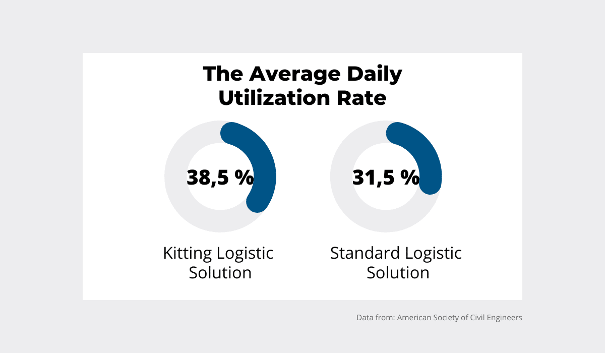 As you can see in the image below, the average daily utilization rate on the project was higher when the kitting logistical solution was implemented.