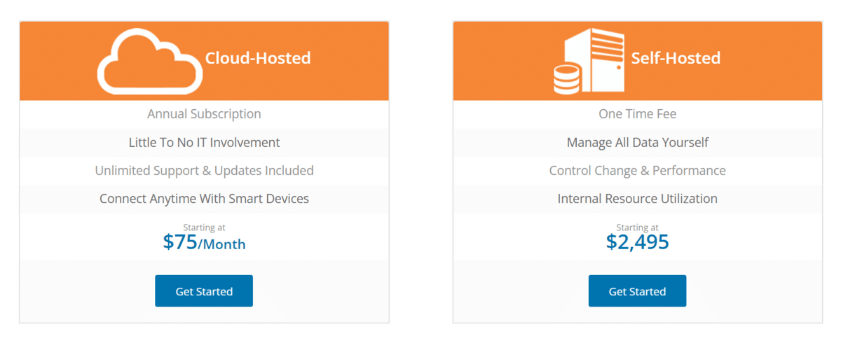 The company also allows you to choose between two major pricing models, and pick either a cloud-hosted or a self-hosted platform.