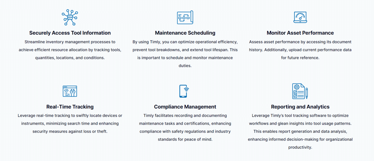 Timly is a cloud-based asset management software that also gives you a full overview of the entire inventory, ensuring that you can track and find the right tools when you need them.